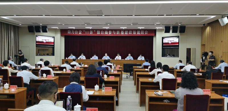 會議由中共中央臺辦、國務院臺辦副主任裴金佳主持,在北京設主會場,上海等8個城市設分會場。國家發展改革委、工業和信息化部、商務部相關業務司局負責人解讀了“11條”政策,宣介了推進復工復產和助企紓困的相關政策措施,有關專家解讀了加快推進新基建對臺商臺企的機遇。相關省市臺辦、全國臺企聯、部分地方臺協負責人和臺商代表近500人參會。