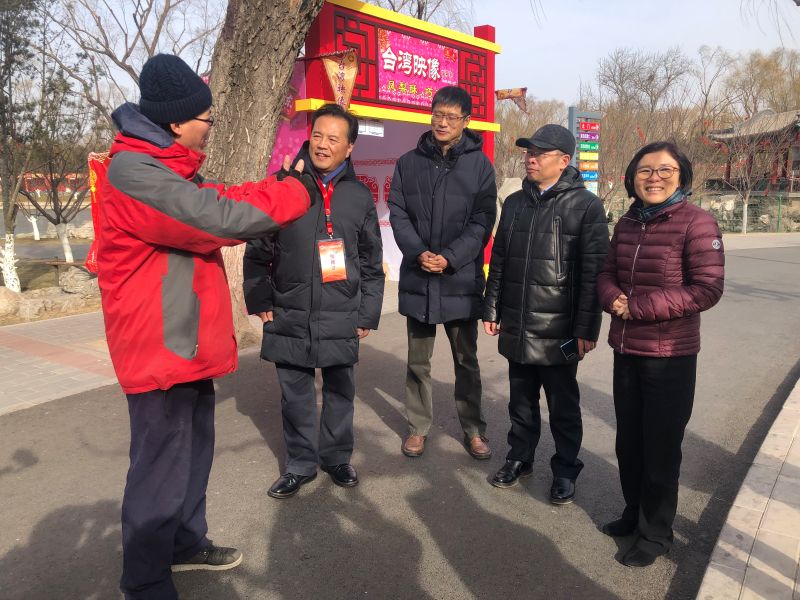 ?????? 東城區(qū)臺(tái)辦消息:2019年2月3日,區(qū)委常委統(tǒng)戰(zhàn)部長(zhǎng)湯欽飛、副區(qū)長(zhǎng)趙凌云到龍?zhí)稄R會(huì)“臺(tái)灣映像魅力展”展區(qū)視察展位布置情況,對(duì)攤位裝飾、地面設(shè)施、用水用電等問(wèn)題提出要求,確保廟會(huì)期間展商及游客的活動(dòng)安全。臺(tái)盟北京市委秘書(shū)長(zhǎng)陳偉一同視察。