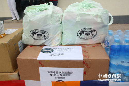 中國臺灣網7月30日北京消息??5000個生活用品包、250箱香積飯、5000條毛毯、15000件全新衣服、5000箱方便面、5000箱飲用水……今天上午,在北京房山區張坊鎮柿子加工廠的大院里,整齊碼放著臺灣慈濟慈善事業基金會為房山區災民送來的救災物資。據悉,慈濟基金會還將后續追加捐助食用油、大米、面粉等生活必需品,以上這些捐助物資總價值約1100萬人民幣,共惠及14000戶房山居民,約40000受災百姓將得到幫助。