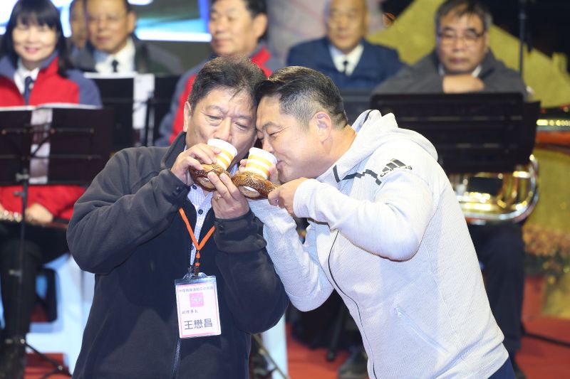 在兩岸民眾透過視頻互致問候聲中,家住右安門街道的民俗專家李石老師向兩岸民眾展示了自制的北京重陽糕、菊花酒,并邀請來自高雄的中華兩岸交流總會副理事長王懋昌先生和右安門體協的馬維志用從臺灣帶回的“同心杯”一同飲下了菊花酒,祝愿兩岸民眾健康長壽。