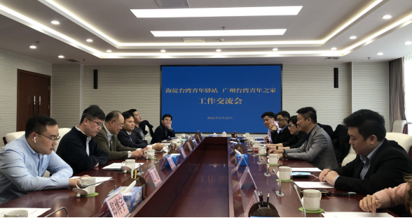 海淀區臺辦主任王鋒向廣州的臺灣青年介紹海淀經濟社會發展和改革創新成果,支持臺青驛站圍繞實習就業、創新創業等臺青關切組織系列活動,歡迎更多臺灣青年來海淀發展自己的事業。