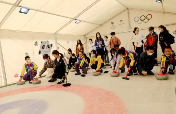 在活動啟動儀式上,兩岸青年為北京冬奧會送上祝福。臺灣青年志愿者服務隊代表陳文成與電廠路小學學生代表共同更換學校冬奧倒計時牌。在參觀電廠路小學“小小冬奧博物館”之后,電廠路小學冰球隊、冰壺隊的“小教練”們生動講解了冬季運動項目知識和冰球冰壺比賽規則。兩岸青年隨機分成兩隊,開展了陸地冰球友誼賽,兩岸青年以球會友,在比賽中相識、在協作中相知。