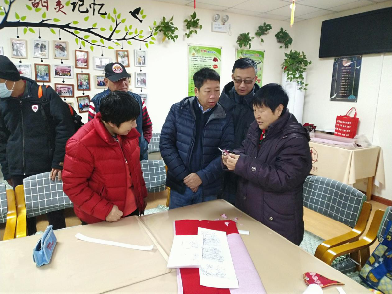 ??? 參訪團一行先后參觀社區黨建文化墻、示范兒童之家、室內健身室、區圖書館龍府分館、養老驛站等,與社區居民進行互動、交流,并與剪紙技藝非物質文化遺產傳承人、“中國巧嫂”郝蘭英一起現場體驗趣味剪紙,在黨群活動室觀看歡迎舞蹈、非遺作品模特展示。