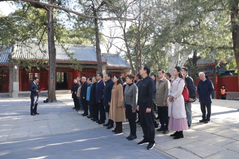 活動現場,相關同志向孫中山先生像敬獻花籃,在孫中山先生漢白玉雕像前肅立并三鞠躬,拜祭孫中山先生衣冠冢,為連戰先生種植的紀念樹澆水,深切緬懷這位偉大的民主革命先行者。