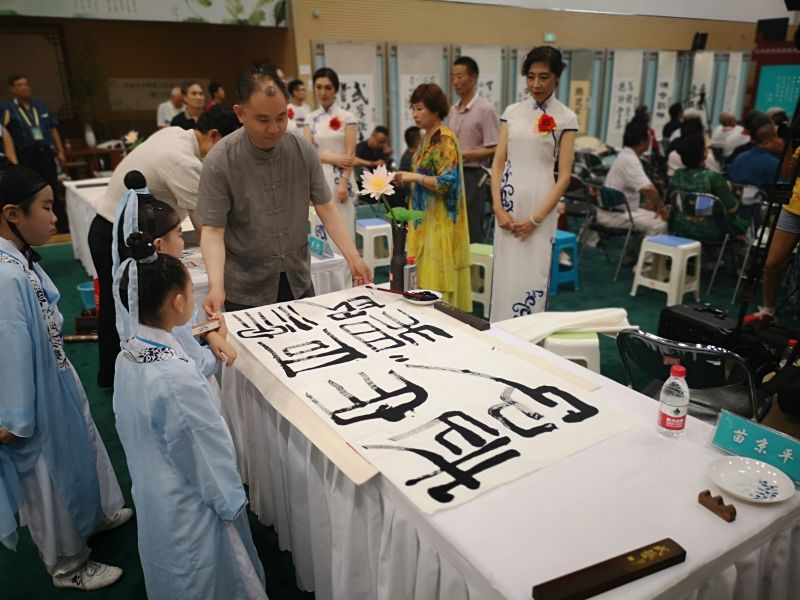 ?????? 4日下午,兩岸武術(shù)家、書畫家、武術(shù)愛好者共計160余人參加了 “武藝天下”武術(shù)書畫攝影交流活動。此次活動的亮點是專門創(chuàng)作的長達12米的“荷和溢美”畫卷,由中國職工書法家協(xié)會理事、國臺辦兩岸交流中心苗京平及臺灣著名收藏家鄭宗坤題字,與會所有嘉賓行印留念,成為海峽兩岸交流和親情的印證。