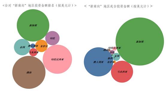蔡英文當局所推“新南向政策”涵蓋范圍為東南亞、南亞和大洋洲共18個地區,按臺統計部門公布的數據進行計算,2020年臺對“新南向”地區投資金額由高到低分別為:越南、新加坡、印度尼西亞、泰國、印度、菲律賓、馬來西亞、澳大利亞、新西蘭;同期“新南向”地區赴臺投資由高到低分別為新加坡、澳大利亞、馬來西亞、泰國、印度、印度尼西亞、菲律賓、越南、新西蘭。