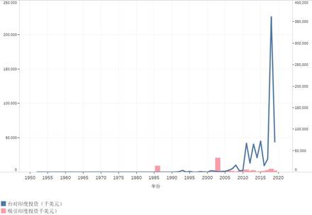 臺與印度相互投資大致始于上世紀80年代。據臺經濟統計部門統計,1989年印度對臺投資2萬美元,2019年增長至224萬美元,2020年約194萬美元,占臺吸引外資總額的0.02%。臺商赴印度投資大約始于90年代,1991年臺商赴印度投資約20萬美元,2019年增長至7000萬美元,2020年約1.5億美元,?約占臺對外投資(大陸地區除外)總額的1.3%。