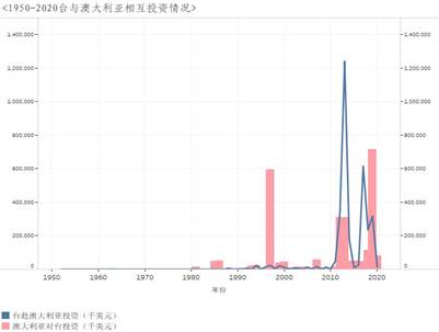 臺與澳大利亞相互投資大致始于上世紀70年代,此前被記錄在案的僅零星小額投資。據臺經濟統計部門統計,1972年澳大利亞對臺投資22.4萬美元,2019年增長至7.1億美元,2020年約7983萬美元,占臺吸引外資總額的0.87%。臺商在80年代后才開始赴澳投資,1984年臺商赴澳大利亞投資約14.4萬美元,2019年增長至3.2億美元,2020年約1417萬美元,?約占臺對外投資(大陸地區除外)總額的0.12%。
