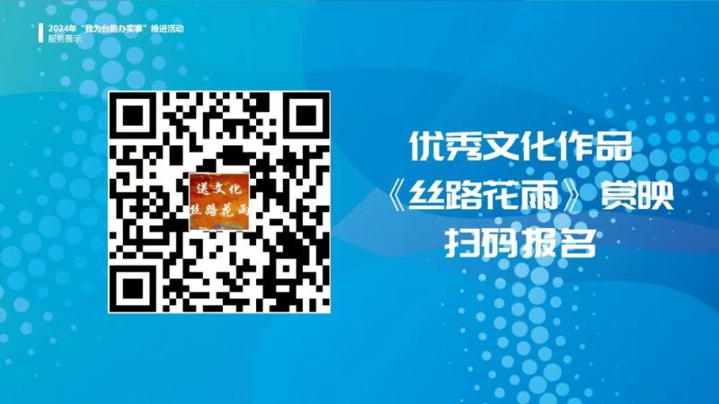 “送文化”活動,2024年“我為臺胞辦實事”之“樂融融”優秀文化作品賞映活動將于12月20日舉行。屆時,在京臺胞將有機會觀賞到大型舞劇《絲路花語》,這部融合了豐富民族元素和絲綢之路文化精髓的作品,將讓臺胞在欣賞中感受到中華文化的博大精深和獨特魅力。
