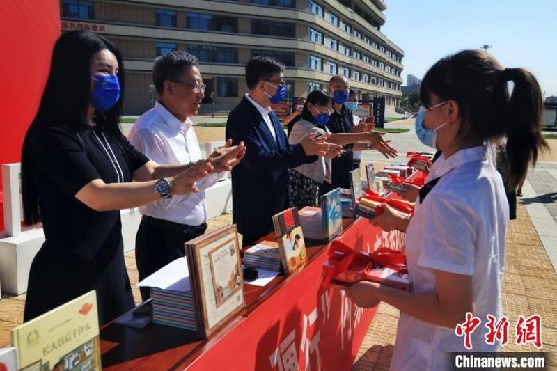 呼和浩特7月25日電 (記者 李雪峰)參加“復興有我——在京臺灣青年邊疆行”交流參訪活動的40余名兩岸青年25日向內蒙古師范大學附屬第二學校學生捐贈圖書。
