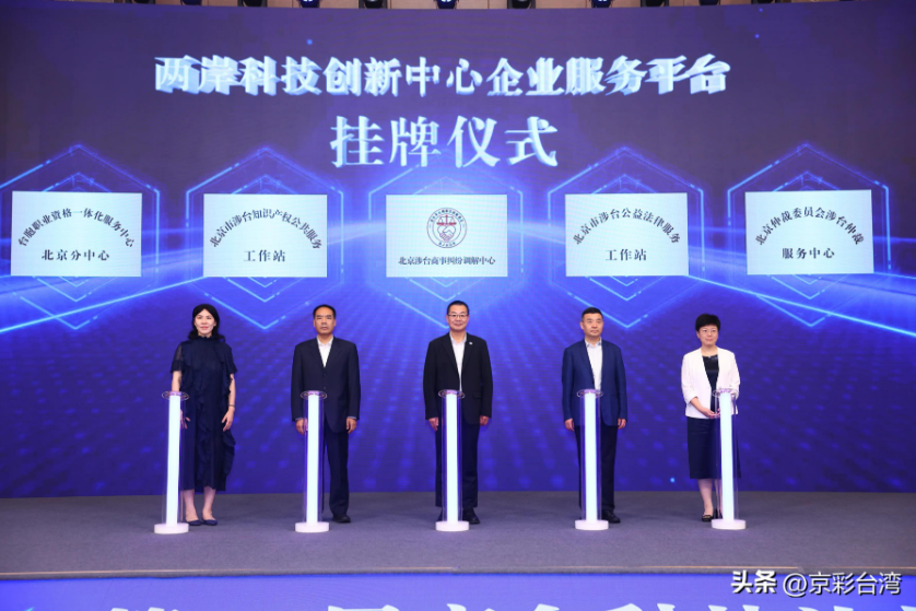 活動還進行了兩岸科技創新中心企業服務平臺集中掛牌儀式,共揭牌落地5個服務平臺,分別是北京涉臺商事糾紛調解中心、北京市涉臺公益法律服務工作站、北京市涉臺知識產權公共服務工作站、北京仲裁委員會涉臺仲裁服務中心、臺胞職業資格一體化服務中心北京分中心。兩岸科技創新中心將以這5個涉臺服務平臺為依托,為臺胞臺企提供更專業、更精準的服務。