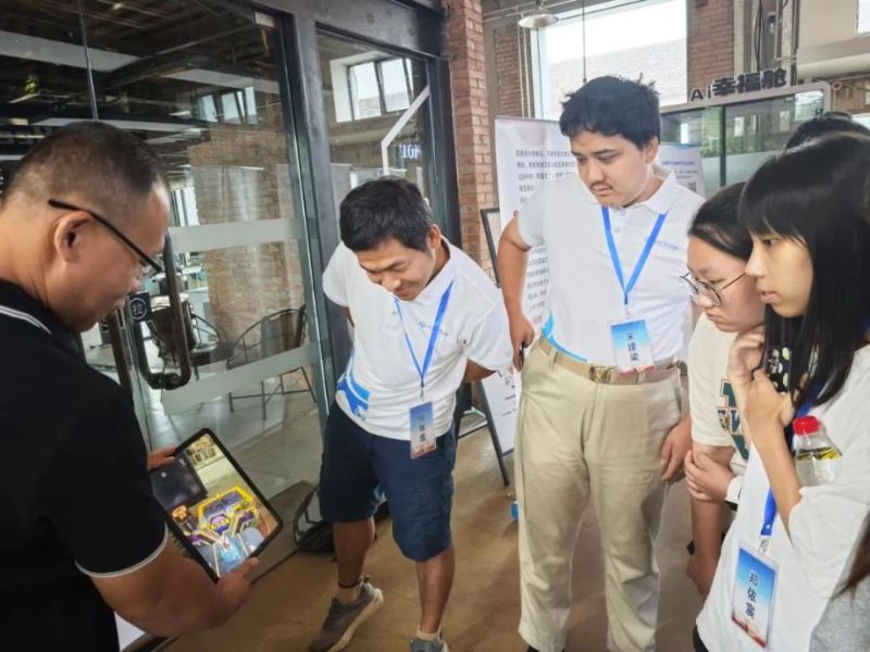 在TOPMAKER咖啡廳,“園區通過城市更新和升級改造,將老舊廠房再利用,把一群有活力、有創造力的年輕人聚集在這個有溫度的創新創業園區。”園區負責人介紹了園區的基本情況和2025青創村“村AI+”邀請賽情況,并歡迎大家報名參賽。園區臺灣文創專家甘老師講述了自己25年來,在大陸推廣中華優秀傳統文化、培育和發展文創園區的故事。參訪團紛紛向他提出了各類關于創業創新的問題,大家面對面進行了互動交流。“歡迎大家積極來實習就業,有很多很好的政策支持幫助我們創新創業,實現夢想”,他分享道。