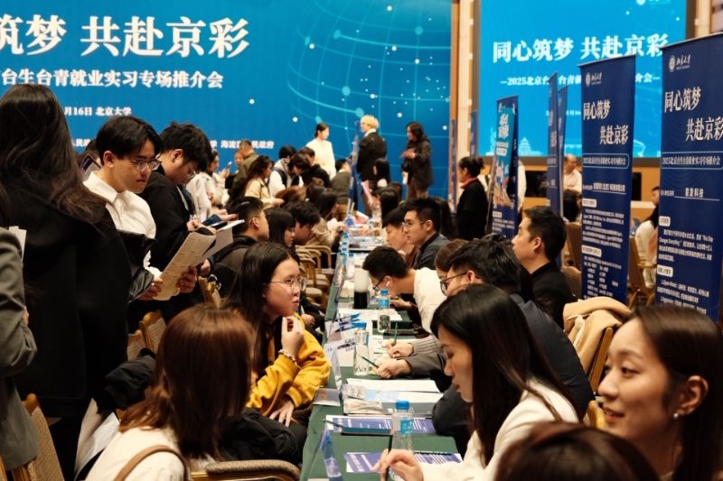 11月16日,由北京市人力資源和社會保障局、北京市國資委、北京大學(xué)、海淀區(qū)政府共同主辦的“同心筑夢 共赴京彩”2025年北京市臺生臺青就業(yè)實習(xí)專場推介會,在北京大學(xué)英杰交流中心陽光大廳舉行。活動吸引60余家首都優(yōu)質(zhì)企業(yè)及單位攜500余個就業(yè)實習(xí)崗位現(xiàn)場攬才,300多名在京臺灣學(xué)生和青年到場洽談。